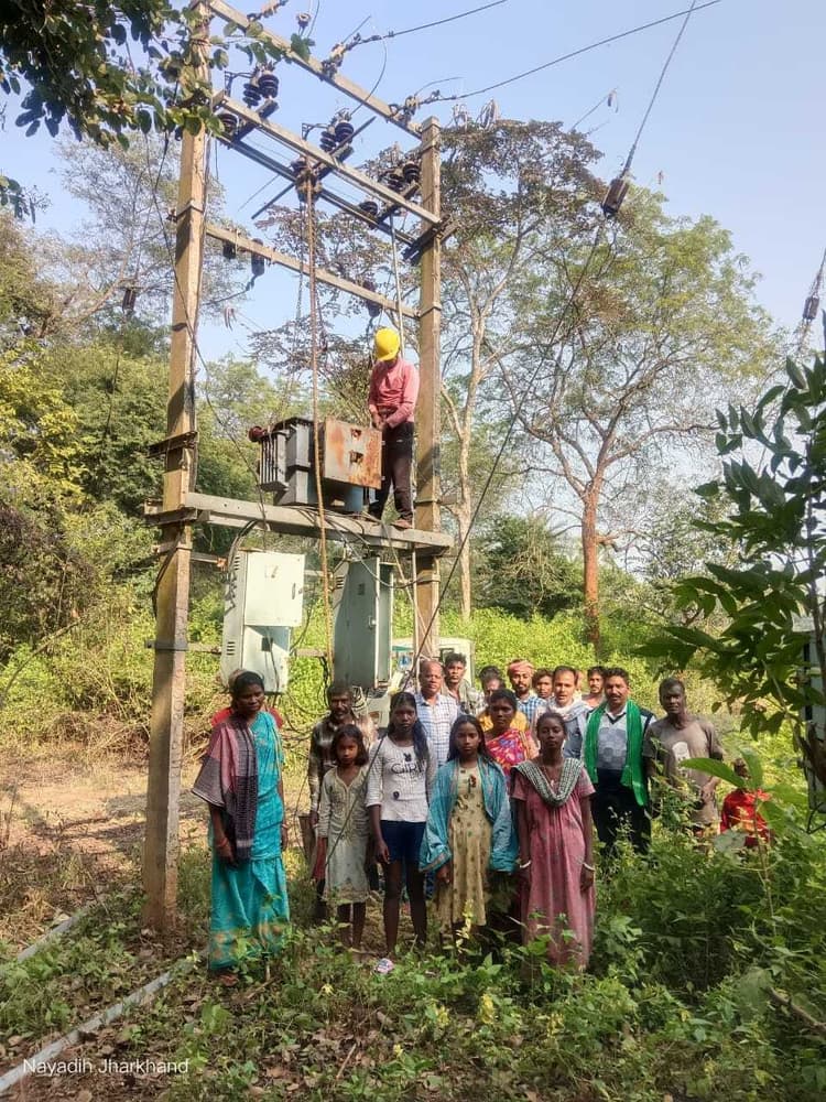 जामा. प्रखंड क्षेत्र अंतर्गत भैरोपुर पंचायत के कालीपुर रांगा गांव में सोमवार को जामा विधायक डॉ लुईस मरांडी की पहल पर 25 केवीए का ट्रांसफॉर्मर लगाया गया. करीब तीन माह से ग्रामीण ढिबरी जलाने को मजबूर थे. बिजली मिस्त्री अजीत कुमार ने ट्रांसफॉर्मर को बदल कर चालू किया. मौके पर झामुमो प्रखंड अध्यक्ष विभीषण मुर्मू, सचिव गौतम दर्वे, सिकंदर दर्वे, सुनील हांसदा, सुशील सोरेन, किरण सोरेन, बुधराय हांसदा उपस्थित थे. ग्रामीणों ने विधायक के प्रति आभार जताया है.