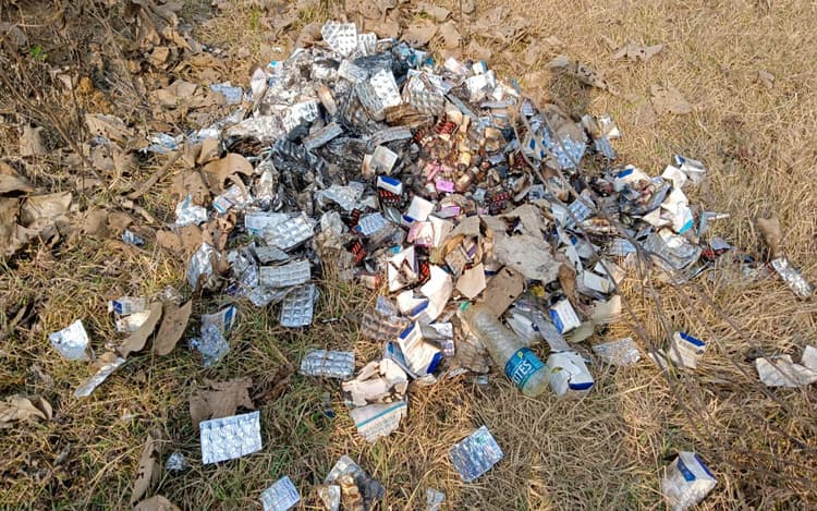 एक्सपायरी से पहले कई कीमती दवाओं को जंगल में फेंका