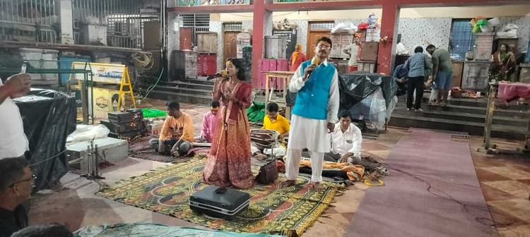 प्रतिनिधि, दुमका बाबा बासुकिनाथ मंदिर के प्रांगण में भक्तों के द्वारा भजन संध्या का आयोजन किया गया. यह कार्यक्रम देवघर चितरा के विवेक राय के द्वारा आरआर म्यूजिकल ग्रुप के नेतृत्व में आयोजित हुआ. इस दौरान गायक व गायिका के द्वारा भजन, स्तुति, आरती, वंदना की एक से बढ़ कर प्रस्तुति दी. इसमें गायक राजेश भारद्वाज व टीम के द्वारा जहां एक से बढ़कर भजनों की प्रस्तुति दी गयी. इस अवसर पर भजन संध्या कार्यक्रम के शुभारंभ में सर्वप्रथम गायिका पूजा महतो ने गणेश वंदना की प्रस्तुति की गयी. राजेश भारद्वाज व पूजा के द्वारा ””””ए शंभु बाबा, बाबा तनी खोल दी केवड़िया, न हमसे भंगिया पिसाइब, ले चल हमरा भोले नगरी, मां शेरावाली भजन से कार्यक्रम का माहौल और आनंदित हो उठा. इसके अलावा कार्यक्रम के सफल संचालन में देवघर से आये वाद्य यंत्र ऑपरेटर ने उल्लेखनीय भूमिका निभायी. कार्यक्रम का आनंद उठाने के लिए मंदिर परिसर में बड़ी संख्या में श्रद्धालु बैठे थे.