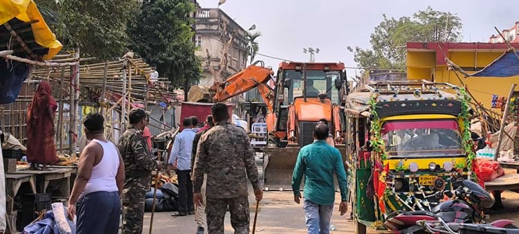 सड़क पर लगी दर्जनों दुकानों के सामान किये गये जब्त, मार्ग से हटाया कब्जा प्रतिनिधि, बासुकिनाथ उपायुक्त के निर्देश पर महाशिवरात्रि को लेकर बासुकिनाथ मंदिर व इसके आसपास दूसरे दिन भी अतिक्रमणकारियों पर बुलडोजर चलाया गया. दर्जनों दुकानों के समान जब्त कर लिया गया. सीओ संजय कुमार व पुलिस निरीक्षक श्यामानंद मंडल के नेतृत्व में अतिक्रमण हटाओ अभियान चलाया गया. मंदिर आने-जानेवाले सभी मार्ग को क्लियर कराया गया. रोड पर से सभी दुकानों को हटाया गया. बासुकिनाथ नागनाथ चौक, शिवगंगा किनारे व मंदिर जानेवाले सभी मार्ग से अतिक्रमण हटाया गया. सभी दुकानदारों को नाला के अंदर रहने की सख्त हिदायत दी गयी. मंदिर व शिवगंगा जानेवाले सभी मार्ग पर से अतिक्रमण हटाया गया. बीच रोड पर दुकानें नहीं लगाने की हिदायत दी. नाला पर से दुकान हटाने का सख्त निर्देश दिया. बासुकिनाथ में अतिक्रमण हटाये जाने का अभियान सख्तीपूर्वक चलाया गया. पानी टंकी, शिवगंगा रोड, बेलगुमा रोड, नागनाथ चौक, नगर पंचायत रोड एवं अन्य स्थलों पर सड़क में अथवा सड़क किनारे लगाये गए दुकानों को हटाया व सड़क पर रखे दुकान की सामग्री व गुमटी को हटाने का निर्देश दिया. सीओ ने बताया कि अतिक्रमण हटाओ अभियान प्रशासन के द्वारा लगातार चलाया जायेगा.कहा : रोड किनारे भवन निर्माण सामग्री रखनेवाले दुकानदारों पर कार्रवाई की जायेगी. सरकारी जमीन पर अतिक्रमण को बर्दाश्त नहीं किया जायेगा. मौके पर कर्मचारी अवनी कुमार वाजपेयी, भाष्कर पंडा, कुंदन कुमार, लाल बाबू मिश्र, पुलिस बल आदि मौजूद थे.