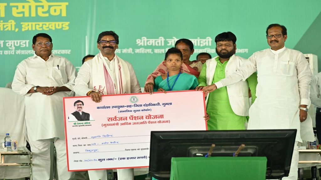 Also Read: नक्सलियों ने गिरिडीह के दो जगहों पर फहराया काला झंडा, छाेड़े पर्चे, पुलिस ने किया जब्त सर्वजन पेंशन योजना की शुरुआतमुख्यमंत्री ने कहा कि कल्याणकारी दायित्वों के निर्वहन में सरकार ने सर्वजन पेंशन योजना की शुरुआत की है. इसके तहत टैक्स -नेट की श्रेणी में आनेवालों को छोड़कर शेष सभी वृद्धजन इस योजना का लाभ पाने के पात्र होंगे. कहा कि आपके अधिकार-आपकी सरकार आपके द्वार कार्यक्रम के दौरान इस योजना का लाभ तीन लाख से अधिक लोगों को दिया गया.