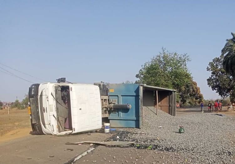 प्रतिनिधि, दुमका दुमका-रामपुरहाट मुख्य मार्ग पर पत्ताबाड़ी के पास गिट्टी लदा हाइवा (बीआर 09जीसी 9422) अनियंत्रित होकर पलट गया. चालक और खलासी घायल हो गये. सूचना मिलते ही पुलिस घटनास्थल पर पहुंची. इससे पूर्व ही चालक और खलासी फरार हो गये. हाइवा सरसडंगाल से दुमका जा रहा था. तेज गति के कारण हाइवा पत्ताबाड़ी के पास पलट गया. घायल अवस्था में चालक और खलासी फरार हो गये हैं.