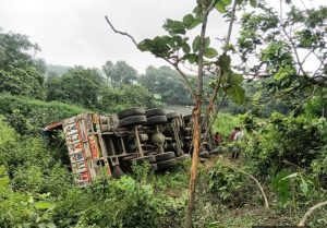 ट्रक पलटा, बच गयी चालक-खलासी की जान