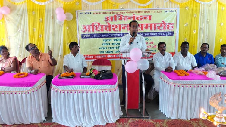 दुमका नगर. झारखंड लोकल बॉडीज इंप्लाइज फेडरेशन, दुमका का एकदिवसीय जिला अधिवेशन मंगलवार को खुट्टाबांध स्थित विवाह भवन में जिला अध्यक्ष संजीव कुमार राम की अध्यक्षता में आयोजित हुआ. अधिवेशन में मुख्य अतिथि के रूप में प्रदेश अध्यक्ष अशोक सिंह और विशिष्ट अतिथि के रूप में प्रदेश महामंत्री अनूप लाल हरि उपस्थित थे. कार्यक्रम की शुरुआत दीप प्रज्वलन के साथ की गयी. अपने संबोधन में प्रदेश अध्यक्ष अशोक सिंह ने कहा कि संगठन हमेशा कर्मचारियों के अधिकारों की रक्षा के लिए आंदोलन करता रहा है और आगे भी करता रहेगा. उन्होंने कहा कि संगठन की एकता से ही अधिकार प्राप्त किए गए हैं. प्रदेश महामंत्री अनूप लाल हरि ने भी सभी सदस्यों से एकजुट होकर अपने अधिकारों के लिए संगठित रूप से आगे आने की अपील की. इस अवसर पर जिला कमिटी का विस्तार भी किया गया. जिला अध्यक्ष के रूप में संजीव कुमार राम, जिला मंत्री विजय कुमार दास, उपाध्यक्ष गोविंद हरि, बुद्धि लाल सोरेन के साथ-साथ संगठन मंत्री के रूप में सुजीत हरि, उमेश हरि, जिला कोषाध्यक्ष के रूप में बैजू हरि का चयन किया गया. सलाहकार समिति में लक्ष्मी देवी, छाया देवी, पूनम देवी, पिंटू राम, सन्नी हरि, अजय हरि और संतोष हरि को शामिल किया गया. मंच संचालन विजय कुमार दास ने किया. कार्यक्रम में हाड़ी विकास मंच के युवा प्रदेश अध्यक्ष विशाल हरि, प्रदेश सचिव सुधीर राम, बसंती देवी सहित अन्य कर्मचारी भी उपस्थित थे.