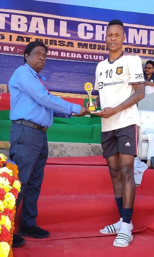 पहले दिन के खेल में अलग-अलग टीम में शामिल विदेशी खिलाड़ी छाये रहे प्री क्वार्टर फाइनल के चारों मुकाबले में विदेशी खिलाड़ी ही रहे मैन ऑफ दी मैच संवाददाता, दुमका सारजोम बेड़ा फुटबॉल चैंपियनशिप का शुभारंभ शुक्रवार को मुख्य अतिथि जिला शिक्षा पदाधिकारी भूतनाथ रजवार, जिला शिक्षा अधीक्षक आशीष कुमार हेंब्रम एवं पूर्व खिलाड़ी ब्रेंतियुस किस्कू ने संयुक्त रूप से भगवान बिरसा की प्रतिमा पर श्रद्धासुमन अर्पित कर किया. अतिथियों ने दुमका में इतने वृहद पैमाने पर फुटबाॅल टूर्नामेंट के आयोजन कर परंपरा बरकरार रखने के लिए सारजोम बेड़ा क्लब के सदस्यों की प्रशंसा की. टूर्नामेंट में 16 टीमें भाग ले रही हैं. कई टीमों ने अफ्रीका महादेश समेत विदेशी खिलाड़ियों को मैदान में उतारा है. पहला मैच बीएसके कॉलेज बरहरवा साहिबगंज बनाम एसी ब्लैक टेल्को, जमशेदपुर के बीच खेला गया, इसमें विजेता एसी ब्लैक टेल्को जमशेदपुर रही, जिसने 1-0 गोल से बीएसके कालेज बरहरवा को पराजित किया. मैन ऑफ दी मैच जमशेदपुर टीम के सदस्य व विदेश खिलाड़ी जकारा रहे. जिन्होंने इकलौता गोल दागा था. दूसरे मैच में बिरसा मुंडा फुटबॉल क्लब रांची व ओम साईं अकादमी धनबाद के बीच मुकाबला हुआ. इसमें बिरसा मुंडा फुटबॉल क्लब रांची 3-1 से विजयी रही. मैन ऑफ द मैच रांची टीम के ही विदेशी खिलाड़ी जीमा रहे. तीसरा मैच अमित ब्रदर्स बोंडामुंडा राउरकेला व बोकारो के मयूरनाचा फुटबॉल क्लब के बीच खेला गया. यह मुकाबला भी रोमांचक रहा, जिसमें राउरकेला से विदेशी मूल के खिलाड़ी इब्राहिम ने इकलौता गोल दाग अपनी टीम को जीत दिलायी. चौथे मैच दुर्गापुर ब्लैक कार्बन बनाम गुमला के बीच खेला गया. गुमला फुटबॉल क्लब पेनल्टी में 4-3 से विजयी रही. मुकाबले में भी मैन ऑफ द मैच गुमला टीम के सदस्य विदेशी मूल के मैक्सवेल रहे. दूसरे राउंड के पहले क्वार्टर फाइनल में एसी ब्लैक टेल्को जमशेदपुर बनाम बिरसा मुंडा फुटबल क्लब रांची के बीच हुए मुकाबले में बिरसा मुंडा फुुटबाल क्लब रांची ने पेनल्टी में 5-3 से विजयी घोषित हुई. मैन ऑफ द मैच रांची टीम के गोलकीपर प्रदीप कुमार रहे. दूसरे क्वार्टर फाइनल मेंगुमला फुटबॉल क्लब ने पेनल्टी में अमित ब्रोदर्स,बोंडामुंडा, राउरकेला 5-4 से पराजित किया. मैच के मैन आफ दी मैच गुमला के लक्ष्मण रहे.
