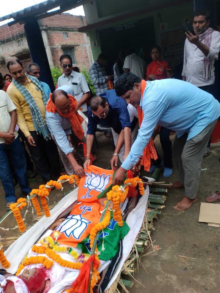 सांसद डॉ निशिकांत दूबे ने जताया शोक, पार्टी का झंडा ओढ़ाकर दी अंतिम विदाई प्रतिनिधि, हंसडीहा भारतीय जनता पार्टी के जनसंघ काल से जुड़े कर्मठ व समर्पित वरिष्ठ नेता घनश्याम कापरी का निधन रविवार की सुबह इलाज के दौरान एम्स देवघर में हो गया. वे हंसडीहा थाना क्षेत्र के कसबा निवासी थे. उनके निधन की सूचना मिलते ही पूरे क्षेत्र में शोक की लहर दौड़ गयी. सांसद डॉ निशिकांत दुबे स्वयं उनके आवास पर पहुंचे. पार्टी की ओर से उन्हें श्रद्धांजलि अर्पित करते हुए उनके पार्थिव शरीर पर भाजपा का झंडा ओढ़ाया. सांसद ने दिवंगत आत्मा की शांति एवं शोकाकुल परिजनों को धैर्य प्रदान करने के लिए भगवान से प्रार्थना की. परिजनों ने बताया कि घनश्याम कापरी का निधन रविवार की सुबह लगभग 3:30 बजे हुआ. उनके पार्थिव शरीर का अंतिम संस्कार भागलपुर के बरारी घाट पर किया गया. वे अपने पीछे दो पुत्र और चार पुत्रियों समेत भरा-पूरा परिवार छोड़ गये हैं.