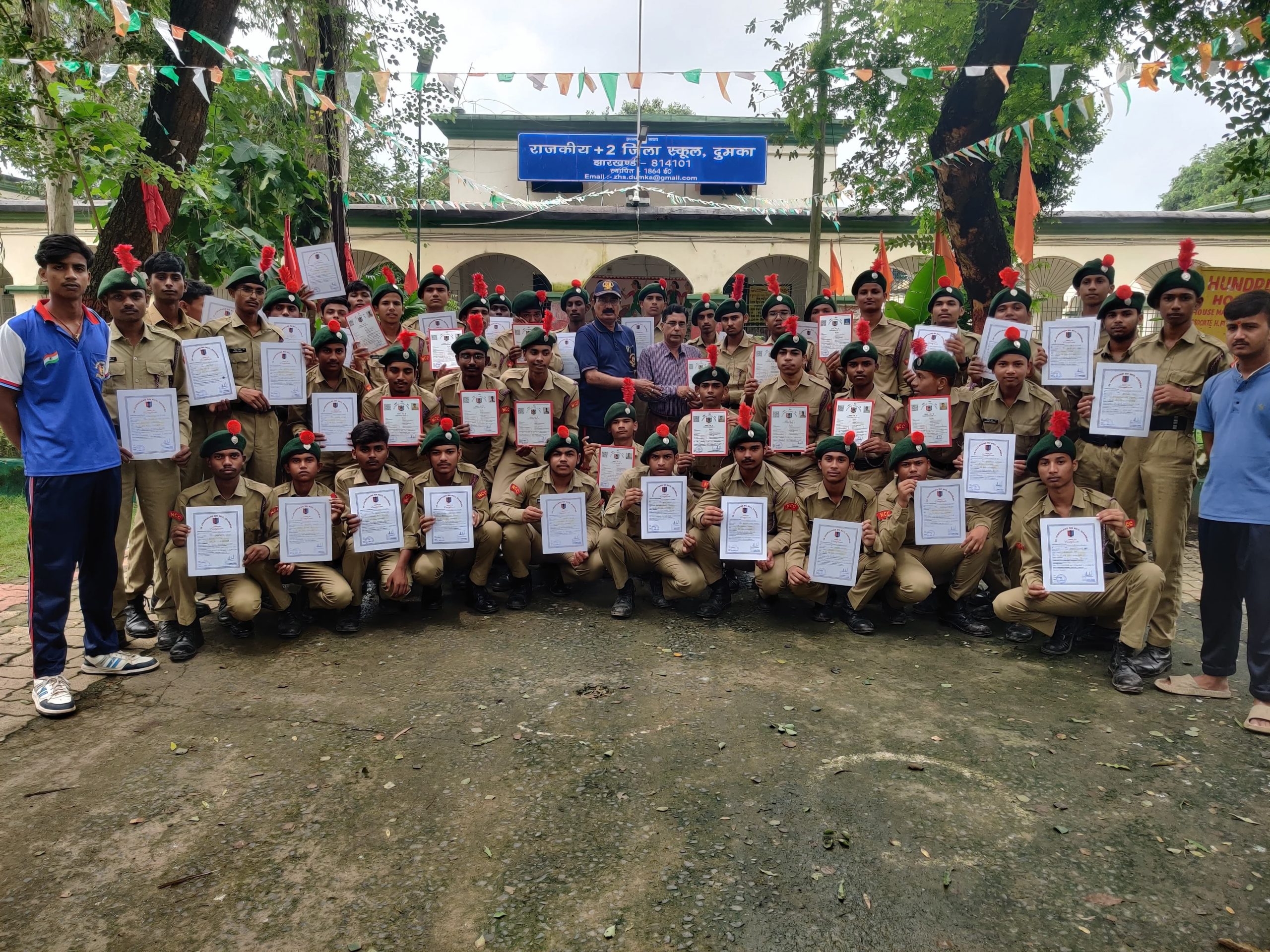 संवाददाता, दुमका डिस्ट्रिक्ट सीएम स्कूल ऑफ एक्सीलेंस दुमका में रविवार को एनसीसी कैडेट्स के लिए प्रमाणपत्र वितरण सह सम्मान समारोह का आयोजन किया गया. समारोह का संचालन एसोसिएट एनसीसी पदाधिकारी दिलीप कुमार झा ने किया. इस अवसर पर 36 झारखंड बटालियन एनसीसी धनबाद के कमांडिंग अफसर कर्नल संजय खंडेलवाल, सूबेदार मेजर एवं प्रधान लिपिक विजय सिंह उपस्थित थे. कैडेट्स को बधाई एवं उज्ज्वल भविष्य की शुभकामनाएं दी. मुख्य अतिथि के रूप में भारत स्काउट एवं गाइड के जिला सचिव विजय कुमार दूबे एवं प्रभारी प्राचार्य महेंद्र राजहंस उपस्थित थे. समारोह में ”ए” सर्टिफिकेट प्राप्त 32 कैडेट्स और स्वर्ण मंगल पब्लिक स्कूल धनबाद के संयुक्त वार्षिक कैम्प से लौटे 43 कैडेट्स को प्रमाण-पत्र दिया गया. विजय कुमार दुबे ने कहा कि एनसीसी का प्रशिक्षण बच्चों को जीवन में सशक्त बनाता है. समाज सेवा, राष्ट्र सेवा तथा नागरिक सुरक्षा में उनकी भूमिका महत्वपूर्ण होती है. प्रभारी प्राचार्य महेंद्र राजहंस ने कहा कि एनसीसी विद्यार्थियों के सर्वांगीण विकास का मंच है. कठिन परिस्थितियों में जीवन जीने की कला सिखाता है. दिलीप कुमार झा ने बताया कि कैडेट्स को प्रशिक्षण में ड्रिल, शारीरिक प्रशिक्षण, अस्त्र-शस्त्र संचालन, फील्ड क्राफ्ट, मैप रीडिंग और नागरिक सुरक्षा की जानकारी दी जाती है, जिससे उनमें अनुशासन, नेतृत्व और टीम भावना विकसित होती है. कार्यक्रम में प्रमाण-पत्र पाने वाले कैडेट्स में श्रीधर झा, विष्णु कुमार, रिशू कुमार, सत्यम मिश्रा, पीयूष लायक, देवराज, अभिषेक तिवारी, अभिषेक यादव, मिलन कुमार मंडल, युवराज सिंह, पवन कुमार दास, अभिषेक चंद्र, आर्यन राज और लक्की गुप्ता सहित अन्य शामिल थे.