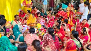 प्रतिनिधि,दुमका नगर उपराजधानी दुमका में हरितालिका तीज व्रत के शुभ अवसर पर विभिन्न मंदिरों में सुहागिनों में पूजा अर्चना की और निर्जला उपवास रखकर अपने पति की दीर्घायु, सुख समृद्धि और यश की कामना भगवान से की. ऐसी मान्यता है कि मां पार्वती ने भगवान शंकर को अपने पति के रूप में प्राप्त करने के लिए तीज का व्रत की थी. इस व्रत में भगवान शंकर और माता पार्वती की पूजा की जाती है. अधिकांश सुहागिनों ने अपने-अपने घरों और मंदिरों में जाकर हरितालिका तीज का व्रत कर पूजा-अर्चना की. साथ ही सोलह शृंगार के साथ तीज व्रत धर्म का पालन करते हुए पूरा भक्ति भाव के साथ तीज व्रत धर्म का पालन किया. इस पवित्र मौके पर सुहागिन महिलाओं ने नये वस्त्र पहनकर, हाथों में मेहंदी लगाकर और सोलह शृंगार कर पुरोहित द्वारा बताये गये शुभ मुहूर्त में भगवान शंकर और मां पार्वती की पूजा अर्चना कर की धर्म का पालन किया. पति की लंबी उम्र की कामना की. दुमका के धर्मस्थान, शिव पहाड़, शिव गोपाल मंदिर और डंगालपाड़ा शिव मंदिर समेत अन्य शिवालयों में सुहागिनों की भीड़ देखी गयी.