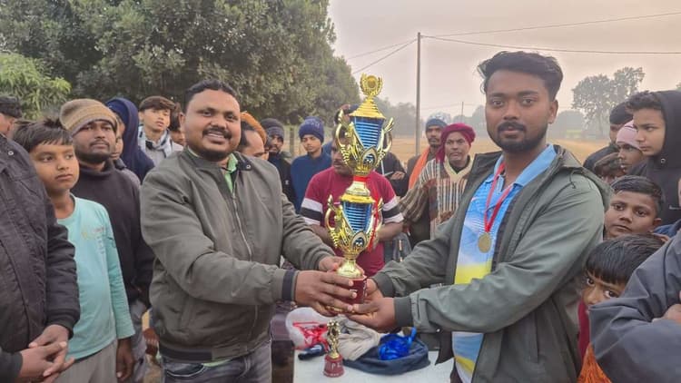 प्रतिनिधि , काठीकुंड पंदनपहाड़ी पंचायत प्रीमियर लीग क्रिकेट टूर्नामेंट का फाइनल मुकाबला रविवार को सुपर किंग और बुलेट-11 के बीच खेला गया. रोमांचक फाइनल मैच में सुपर किंग की टीम ने शानदार प्रदर्शन करते हुए पांच विकेट से जीत दर्ज कर खिताब अपने नाम किया. फाइनल मैच में बुलेट-11 के कप्तान नितेश मंडल ने टॉस जीतकर पहले बल्लेबाजी करने का निर्णय लिया. निर्धारित 10 ओवर में बुलेट-11 की टीम 63 रन ही बना सकी. टीम की ओर से कप्तान नितेश कुमार ने नौ गेंदों में सर्वाधिक 16 रन बनाये. वहीं सुपर किंग से उत्तम मंडल ने शानदार गेंदबाजी करते हुए चार विकेट झटके. जवाब में लक्ष्य का पीछा करने उतरी सुपर किंग की टीम ने सधी हुई बल्लेबाजी करते हुए मुकाबला पांच विकेट से अपने पक्ष में कर लिया. टीम की जीत में प्रेमलाल मंडल ने अहम भूमिका निभायी. 26 रन बनाकर टीम को विजयी बनाया. फाइनल मैच में शानदार प्रदर्शन के लिए उत्तम मंडल को मैन ऑफ द मैच घोषित किया गया. मैच के समापन के बाद पुरस्कार वितरण समारोह का आयोजन किया गया. मुख्य अतिथि झामुमो के केंद्रीय मीडिया प्रभारी कलीम अंसारी ने विजेता टीम सुपर किंग को कप देकर सम्मानित किया. वहीं उपविजेता बुलेट-11 टीम को पंसस जयनारायण मंडल उर्फ गुड्डू ने कप प्रदान कर सम्मानित किया. फाइनल मैच के दौरान पंदनपहाड़ी झामुमो पंचायत अध्यक्ष ध्रुव दास, नबो मंडल, रतन दास, मधुसूदन मंडल, डब्लू मंडल, दयानंद मंडल, दीपक मंडल, राजू मंडल, प्रदीप मंडल, भरत मंडल आदि मौजूद थे.