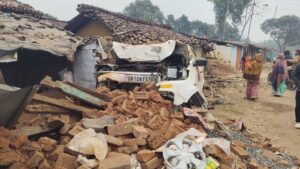 हादसा : कार सड़क से उतरकर घर में घुसी, भागलपुर से बासुकिनाथ जा रहे पांच यात्री जख्मी