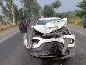 हाइवा की चपेट में आकर दंपती की मौतसाहिबगंज-गोविंदपुर हाइवे पर 2 नवंबर को दुमका के मुफस्सिल थाना क्षेत्र के कुकुरतोपा गांव में कार की ट्रक से टक्कर हो गयी. टक्कर इतनी जोरदार थी कि कार सड़क से दूर जा गिरी और बुरी तरह क्षतिग्रस्त हो गयी. स्टोन चिप्स से लदा हाइवा पाकुड़ से दुमका की ओर आ रहा था, जबकि कार दुमका से पाकुड़ जा रही थी. घटनास्थल पर ही कार सवार दंपती की मौत हो गयी, जबकि उसमें सवार उनकी बेटी गंभीर रूप से घायल हो गयी थी. मृतक दंपती पाकुड़ जिला के गोसाईपुर गांव के रहनेवाले थे.