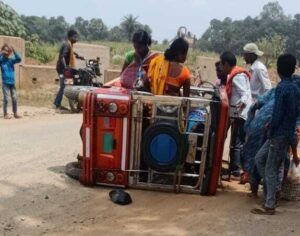 हादसा : यात्रियों से भरा टोटो पलटा, महिला का हाथ टूटा