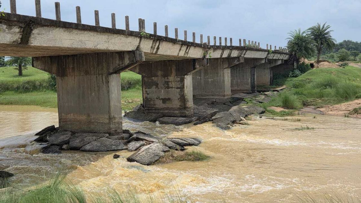 मसलिया प्रखंड के सीमावर्ती क्षेत्र बास्कीढ़ीह गांव के रगदापाड़ा और वनगढ़ी के बीच शिलानदी पर बना पुल पूरी तरह से क्षतिग्रस्त हो गया है.