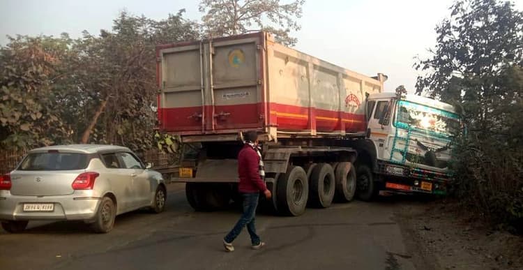 प्रतिनिधि, गोपीकांदर गोविंदपुर-साहिबगंज स्टेट हाइवे में गोपीकांदर थाना क्षेत्र के कारुडीह मोड़ के बीच सुबह 5 बजे दुमका आ रहा ट्रेलर हादसे का शिकार हो गया. घटना में किसी की हताहत होने की कोई सूचना नहीं है. ट्रेलर का चालक मुकेश कुमार ने बताया कि बेगूसराय से कारुडीह मोड़ होते हुए पाकुड़िया थाना क्षेत्र के खेखसा क्रशर गिट्टी लाने जा रहा था. इस दौरान सुबह 5 बजे पाकुड़ से आ रहे अज्ञात ट्रक ने ट्रक को ओवरटेक करने के वजह से ट्रेलर का संतुलन बिगड़ गया. ट्रेलर बुरी तरह से फंस गया. हादमें चालक और उपचालक सुरक्षित केबिन से बाहर निकल गये. गोपीकांदर पुलिस को सूचना प्राप्त होते ही घटनास्थल पर पहुंच कर जांच की. ट्रेलर को बीच सड़क से हटाने की तैयारी की. पर बीड़ी पत्ता भारी वाहनों का आवागमन रुक गया था. दिन के 11 बजे ट्रेलर को सड़क से सुरक्षित हटा लिया गया.