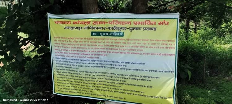 संवाददाता, दुमकाअमड़ापाड़ा, गोपीकांदर, काठीकुंड और दुमका प्रखंड के ग्रामीण पचुवाड़ा कोल परियोजना के विभिन्न गतिविधियों में खिलाफ जोरदार विरोध दर्ज कराने के लिए गोलबंद हो रहे हैं. 15 जून से इसको लेकर कोयला वाहनों का परिवहन साहिबगंज-गोविंदपुर मुख्य पथ के काठीकुंड थाना क्षेत्र स्थित चांदनी चौक पर तब तक के लिए बंद कराने का निर्णय लिया गया है. जब तक इसे लेकर कोई ठोस पहल नहीं की जाती है. इस संबंध में सांसद प्रतिनिधि जोन सोरेन समेत अन्य कई लोगों ने आवेदन एसडीओ को सौंप कर इसकी सूचना दी है. कोयला गाड़ियों के अनिश्चितकालीन बंदी का संचालन करने के लिए जहां चांदनी चौक में पंडाल बनाया जा रहा है. इसे लेकर काठीकुंड के मधुबन से गोपीकांदर सीमा तक जगह-जगह पचुवाड़ा कोयला खान परिवहन प्रभावित संघ के नाम से बड़े-बड़े बैनर लगाये गये हैं, जिनमें कई बिंदु समाहित है. लगे बैनर में लिखा है कि पश्चिम बंगाल पावर डेवलपमेंट कॉरपोरेशन लिमिटेड (WBPDCL) द्वारा बिना भूमि अधिग्रहण और स्थानीय लोगों की सहमति के उनके गांवों की जमीन का इस्तेमाल कोयले के खनन और परिवहन के लिए किया जा रहा है. यह गतिविधियां आदिवासी अधिकारों और पर्यावरणीय संतुलन दोनों के लिए गंभीर खतरा बन गई हैं. यह उल्लेख किया गया है कि प्रतिदिन 10000 से अधिक डीजल चालित ट्रकों से लगभग 60,000 टन कोयले का परिवहन किया जा रहा है, जिससे गांवों की सड़कों की हालत बदतर हो गई है और वातावरण में धूल एवं प्रदूषण का स्तर खतरनाक रूप से बढ़ गया है. इस अवैध खनन और परिवहन से न केवल पर्यावरण पर विपरीत प्रभाव पड़ रहा है, बल्कि स्थानीय लोगों की जान-माल की भी क्षति हो रही है.