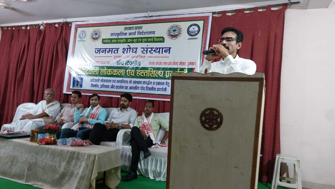 जनमत द्वारा आयोजित लोककला एवं हस्तशिल्प प्रदर्शनी संपन्न संवाददाता, दुमका सांस्कृतिक कार्य निदेशालय, पर्यटन कला संस्कृति खेलकूद व युवा कार्य विभाग झारखंड सरकार के सहयोग से जनमत शोध संस्थान दुमका द्वारा आयोजित पांच दिवसीय आदिवासी लोककला व हस्तशिल्प प्रदर्शनी के पांचवें दिन समापन समारोह आयोजित किया गया. सहायक निदेशक शत्रुघ्न प्रसाद ने कहा कि सरकार हस्तशिल्पियों के विकास के लिए कई कल्याणकारी योजनाएं चला रही हैं. क्षमताबर्द्धन के लिए प्रशिक्षण कार्यक्रम भी चला रहीं हैं. इससे जुड़कर लाभ लेने की जरूरत है. जिला खेल पदाधिकारी तूफान कुमार पोद्दार ने कहा कि हमारे कला संस्कृति विभाग से जनमत शोध संस्थान को आयोजन की जो जिम्मेदारी दी गयी थी. वो बहुत सफलतापूर्वक सम्पन्न हुआ है. कार्यक्रम में मेरा युवा भारत दुमका के जिला युवा अधिकारी अभिषेक आनंद, उदय कुमार सिंह, विक्रमशिला विद्यापीठ के कुलपति डॉ राम जन्म मिश्र, मुख्यमंत्री कुटीर बोर्ड के जिला कार्यक्रम समन्वयक विनय रंजन शोध छात्रा मयूरी घोष आदि ने भी समारोह को संबोधित किया. इस अवसर पर प्रतिभागियों एवं प्रशिक्षकों के बीच प्रमाण-पत्र भी वितरित किया गया. तीन सत्रों में आयोजित कार्यक्रम के प्रथम सत्र में वरिष्ठ कलाकारों शिल्पकारों के द्वारा युवा पीढ़ी विशेषकर महिला शिल्पकारों को विभिन्न परंपरागत लोक एवं शिल्प का प्रशिक्षण दिया गया. जिसमें जादोपटिया पेंटिंग, आदिवासी कठपुतली लोक कला चादर बादोनी, डोकरा आर्ट, पेपर क्राफ्ट, बम्बू क्राफ्ट और मुखौटा कला का प्रशिक्षण दिया गया. कार्यक्रम के अंतिम दिन बड़ी संख्या में दर्शकों ने कला प्रदर्शनी के तहत विभिन्न स्टॉलों पर लगी प्रदर्शनियों का अवलोकन किया. साथ सांस्कृतिक कार्यक्रम का आनंद उठाया. जनमत शोध संस्थान के सचिव अशोक सिंह के मार्गदर्शन एवं प्रोग्राम को-ऑर्डिनेटर प्रभा सोरेन के संयोजन में आयोजित उक्त कार्यक्रम बड़ी संख्या में आदिवासी कलाकार और हस्तशिल्पियों ने भाग लिया. कला प्रशिक्षक के रूप में बाबूधन मुर्मू, बोड़ोधन मुर्मू, सोमनाथ राय, सुनील शर्मा, शबाना परवीन, रुपम कुमारी, मुकेश कुमार मोहली, बोबी देवी आदि प्रमुख हैं. कार्यक्रम को सफल बनाने में शंभूनाथ सेन, संतोष भंडारी, कुंदन कुमार साह, पुलिश सोरेन, अमित राज आदि ने सक्रिय भूमिका निभायी.
