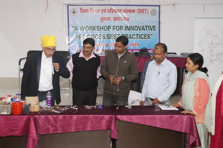 संवाददाता, दुमका जिला शिक्षा व प्रशिक्षण संस्थान डायट दुमका में जिले के सभी माध्यमिक विद्यालयों के विज्ञान शिक्षकों के लिए कार्यशाला आयोजित की गयी. कार्यशाला में रिसोर्स पर्सन के रूप में सेवानिवृत्त विज्ञान शिक्षक कामाख्या नारायण सिंह, प्लस टू उच्च विद्यालय जामा के शिक्षक डॉ मृत्युंजय कुमार व अभिजीत दत्ता ने शिक्षकों को प्रशिक्षित किया. प्रशिक्षकों ने प्रतिभागी शिक्षकों को आठ टीम में बांटकर रासायनिक अभिक्रिया व समीकरण से संबंधित आठ तरह के अभिक्रियाओं का प्रायोगिक प्रदर्शन किया. इसमें मुख्य रूप से ऊष्मांशोषी अभिक्रिया, विस्थापन, द्वि विस्थापन, विघटन, उष्मीय विघटन, अभिक्षेपन अभिक्रिया आदि के विषय में बताया गया. इसके पूर्व कार्यशाला का उद्घाटन दीप प्रज्वलित कर प्रभारी प्राचार्य सुषमा हांसदा, सभी प्रशिक्षकों एवं डायट संकाय सदस्यों ने सम्मिलित रूप से किया. स्वागत भाषण व विषय प्रवेश डायट संकाय सदस्य प्रियंकर परमेश द्वारा किया गया. कार्यशाला के सफल संचालन में डायट संकाय सदस्य मधुश्री कुमारी, किशोर कुमार मंडल, लिपिक संतोष कुमार एवं सनातन टुडू की उल्लेखनीय भूमिका रही. कार्यशाला में राजेश रंजन, तरुण पंडित, विनय कुमार, अशोक यादव, नयन कुमार, रीता रानी, मृणमय मुखर्जी, सुषमा मुर्मू, प्रेमा केरकेट्टा, महबूब आलम सहित 70 माध्यमिक विद्यालय के शिक्षक उपस्थित थे.
