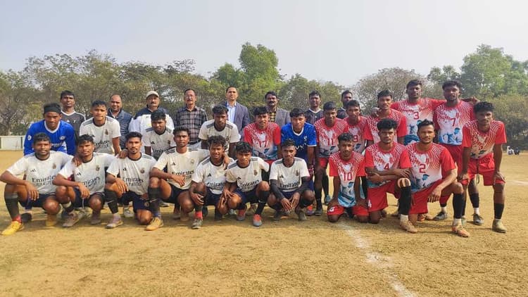 बहरागोड़ा. कोल्हान विश्वविद्यालय अंतर महाविद्यालय फुटबॉल टूर्नामेंट (पुरुष व महिला)- 2025 के चौथे दिन मंगलवार को बहरागोड़ा के वीणापाणि पाठागार स्टेडियम में सेमीफाइनल मुकाबले खेले गये. मौके पर बहरागोड़ा के बीडीओ केशव भारती मुख्य अतिथि रहे. महिला वर्ग का सेमीफाइनल एलबीएसएम कॉलेज, जमशेदपुर और टाटा कॉलेज चाईबासा के बीच खेला गया. टाटा कॉलेज चाईबासा ने 2-0 से जीत दर्ज कर फाइनल में प्रवेश किया. महिला वर्ग का फाइनल मुकाबला बुधवार को टाटा कॉलेज चाईबासा और घाटशिला कॉलेज के बीच खेला जायेगा.