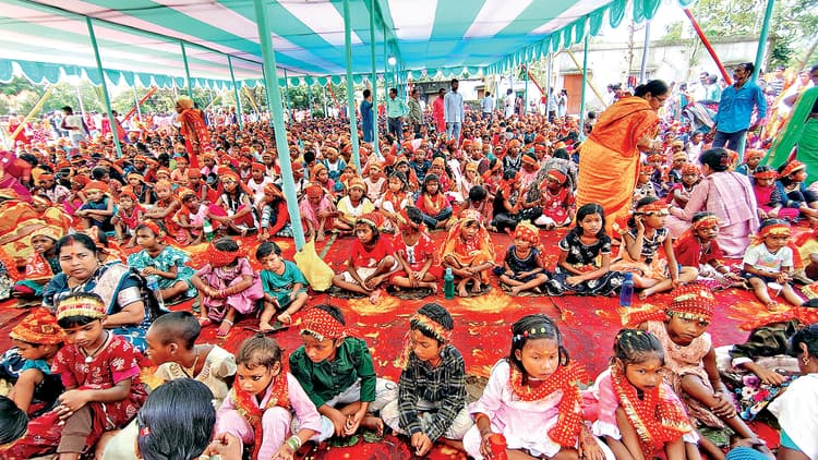 पटमदा के शिव शक्ति पंचमुखी हनुमान मंदिर कुलटांड़ में आयोजित दुर्गा पूजा के 9वें दिन बुधवार को वनवासी कल्याण केंद्र जमशेदपुर की ओर से जम्मू वाले बाबा की देखरेख में 1501 कुंवारी कन्याओं की पूजा की गयी. कार्यक्रम में मुख्य रूप से पूर्व मंत्री रामचंद्र सहिस, वनवासी कल्याण केन्द्र के राष्ट्रीय उपाध्यक्ष कृपा प्रसाद सिंह, झारखंड उपाध्यक्ष आरके झुनझुनवाला, रामनाथ सिंह, ललित सिंघानिया, सुधीर लाल, अशोक सिंह, रूपेश कुमार, रंजीत सिंह व रंजन सिंह शामिल हुए.पटमदा के विभिन्न गांवों से पहुंची 1501 कन्याओं ने बांसगढ़ तालाब से बैंड बाजे के साथ कलश यात्रा निकाली. मंदिर पहुंचने के बाद कमेटी की महिलाओं द्वारा सभी कन्याओं का पैर धुलाकर कतार में बैठाया गया. इसके बाद बारी-बारी से सभी कन्याओं को नये वस्त्र व शृंगार करते हुए विधिवत पूजा अर्चना की गयी. कार्यक्रम को सफल बनाने में जम्मू वाले बाबा, रामनाथ सिंह, शरत सिंह सरदार, पंचानन दास, गिरजा प्रसाद मिश्र, भरत साव, यदुनाथ गोराई, चंदन सिंह, मुखिया कृष्णपद सिंह, राखहरि सिंह, दलगोविंद सिंह, गोपाल कुमार, कैलाश सिंह का सराहनीय योगदान रहा.डिस्क्लेमर: यह प्रभात खबर समाचार पत्र की ऑटोमेटेड न्यूज फीड है. इसे प्रभात खबर डॉट कॉम की टीम ने संपादित नहीं किया है