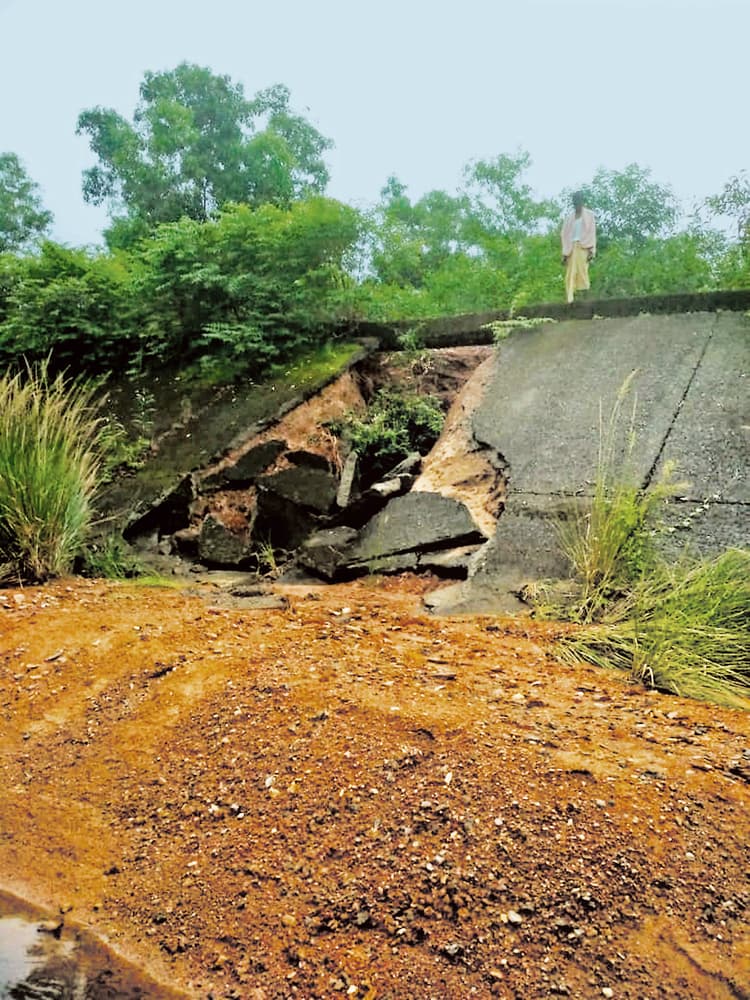 घाटशिला की हेंदलजुड़ी पंचायत स्थित कालाझोर गांव के पास लगातार बारिश और पहाड़ का पानी उतरने से मुख्य बायीं नहर तीन जगहों पर ध्वस्त हो गयी है. नहर से सुखना पहाड़ सटा है. नहर में पानी के साथ मिट्टी-पत्थर भी आ गये. अब नहर में पानी छोड़ने पर पानी आगे नहीं जायेगा. किसान चिंतित हैं. किसान सभा के नेता दुलाल चंद्र हांसदा ने बताया कि इसकी जानकारी सुवर्णरेखा परियोजना के अभियंताओं को दी गयी. जल्द नहर की मरम्मत की मांग की है. अभी खरीफ का मौसम है. बारिश बंद होगी, तो किसानों को नहर से पानी की जरूरत पड़ेगी. अगर अभी समय रहते मरम्मत नहीं हुई, तो जरूरत के समय किसानों को पानी नहीं मिलेगा. दुलाल हांसदा ने बताया कि एक जगह पर ज्यादा नुकसान हुआ है. जानकारी हो कि चांडिल से निकली मुख्य बायीं नहर 127 किमी लंबी बहरागोड़ा से बंगाल सीमा तक बनी है. इससे हर साल खरीफ की खेती के समय झारखंड के किसानों को खेती के लिए पानी मिलता है.क्षतिग्रस्त सिंचाई नाला की मरम्मत में जुटे किसान