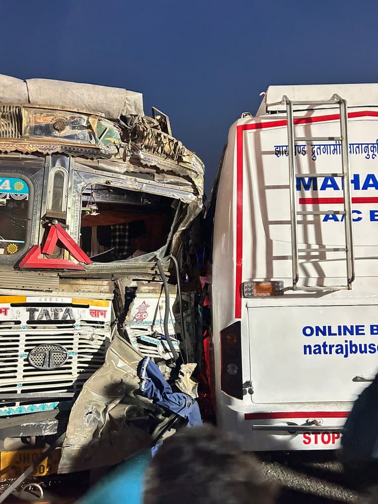 जानकारी के अनुसार, बस रांची से जमशेदपुर आ रही थी. कांदरबेड़ा चौक पर कांदरबेड़ा-दोहमुहानी सड़क मार्ग पर मोड़ते ही दुर्घटना हो गयी. चौक पर दीसरी तरफ से जमशेदपुर से रांची की ओर जा रहे ट्रक ने टक्कर मार दी. ट्रक का खलासी भी घायल हुआ है.कांदरबेड़ा चौक पर स्पीड ब्रेकर की मांग
