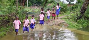 East Singhbhum News : हाथों में चप्पल व बैग लेकर घुटने भर पानी में स्कूल जाते हैं बच्चे