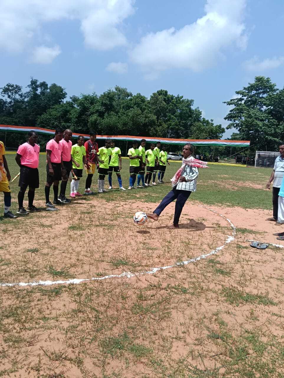 बहरागोड़ा. बहरागोड़ा के बांसदा फुटबॉल मैदान में खेरवाल ब्वॉयज यूथ क्लब की ओर से 20वीं दो दिवसीय फुटबॉल प्रतियोगिता शनिवार से शुरू हुई. उद्घाटन मैच पश्चिम बंगाल के सिदो- कान्हू एफसी और मुटुरखाम एफसी के बीच खेला गया. मैच का उद्घाटन वीर शहीद गणेश हांसदा के पिता सुबदा हांसदा ने खिलाड़ियों से परिचय प्राप्त कर व फुटबॉल को किक मारकर किया. प्रतियोगिता में 16 टीमें भाग ले रही हैं. विजेता टीम को 1 लाख, उपविजेता टीम को 75 हजार तथा सेमीफाइनल में हारने वाली टीमों को 32-32 हजार रुपये देकर पुरस्कृत किया जायेगा. फाइनल मैच सात सितंबर को खेला जायेगा. फुटबॉल मैच देखने के लिए दूर दराज से लोग पहुंचे. मौके पर राहुल हांसदा, विनय कुमार हांसदा, सुनील हेंब्रम, मंगल टुडू, नंदू पैड़ा, दिनेश हांसदा, तरुण सिंह, मंगल मुर्मू, मिथुन बेरा आदि समेत क्लब के सभी सदस्य खेल को सफल बनाने में जुटे हुए हैं.