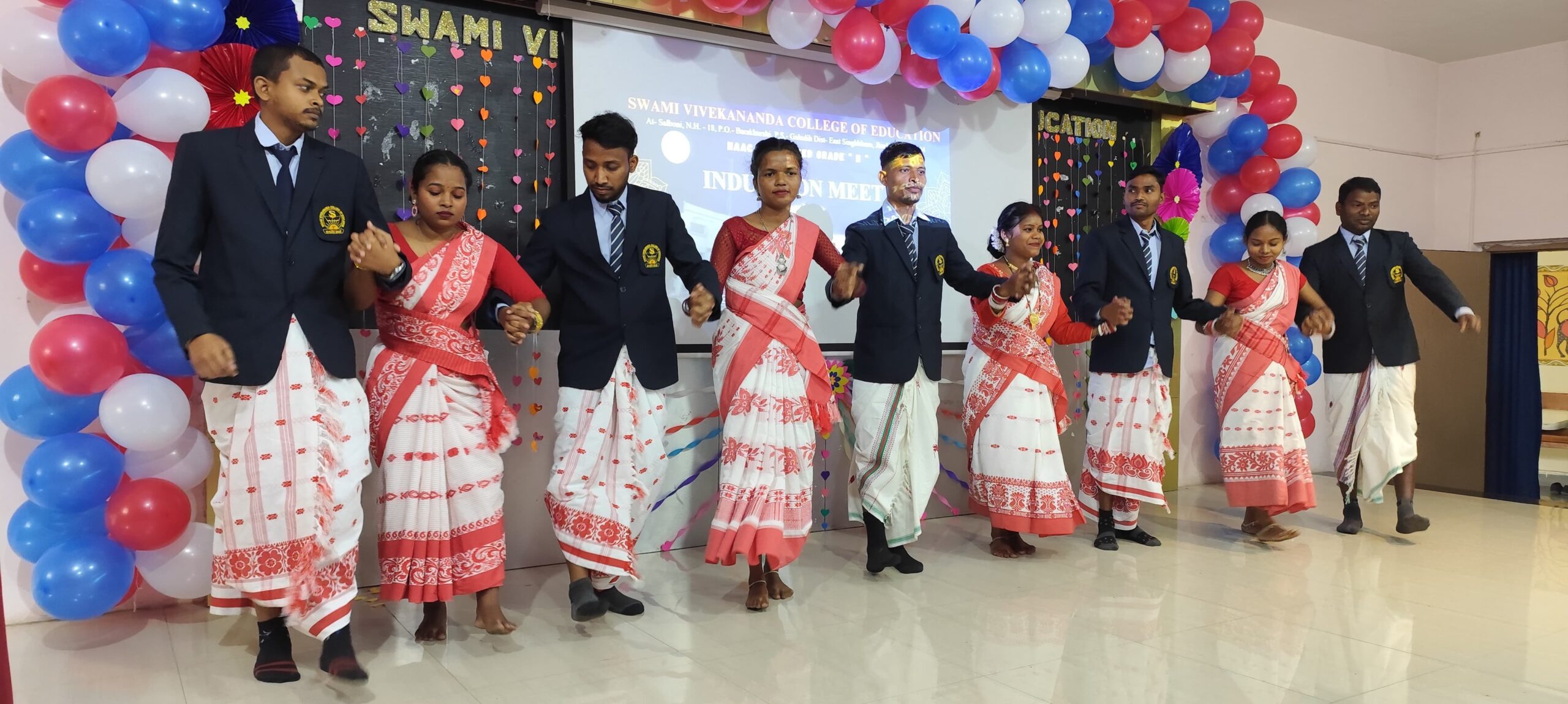गालूडीह. सालबनी स्थित स्वामी विवेकानंद कॉलेज ऑफ एजुकेशन के सभागार में बुधवार को इंडक्शन मीट कार्यक्रम “उमंग, सपने सच होने का ” हुआ. मुख्य अतिथि कॉलेज के चेयरमैन सुब्रतो कुमार विश्वास, डॉयरेक्टर तन्मय सिंह सोलंकी, प्रिंसिपल डॉ बसंत कुमार पंडित, श्रेया विश्वास व शिक्षकों ने कार्यक्रम का शुभारंभ किया. विद्यार्थियों ने स्वागत गीत प्रस्तुत किया. प्रिंसिपल डॉ बसंत कुमार पंडित ने शिक्षकों का परिचय कराया. विद्यार्थियों को कॉलेज के नियम के बारे में बताया. मौके पर चेयरमैन ने कहा कि अच्छा शिक्षक बनने के लिए अच्छा इंसान होना बहुत जरूरी है. महाविद्यालय कई वर्षों से शैक्षिक गुणवत्ता, अनुशासन और नवाचार में लगातार नये मानक स्थापित कर रहा है. प्रिंसिपल ने कहा कि मुझे उम्मीद है कि दो साल में आप बेहतर शिक्षक बनकर कॉलेज का नाम रौशन करेंगे. साईं ट्रस्ट के डायरेक्टर तन्मय सिंह सोलंकी ने कहा कि हमारा महाविद्यालय स्वामी विवेकानंद के आदर्शों पर संचालित होता है. 3जी 17- नृत्य प्रस्तुत करते विद्यार्थी
