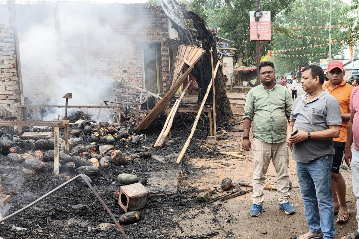 Ghatshila News: मऊभंडार चौक पर भीषण आग, 5 दुकानें खाक, लाखों का नुकसान