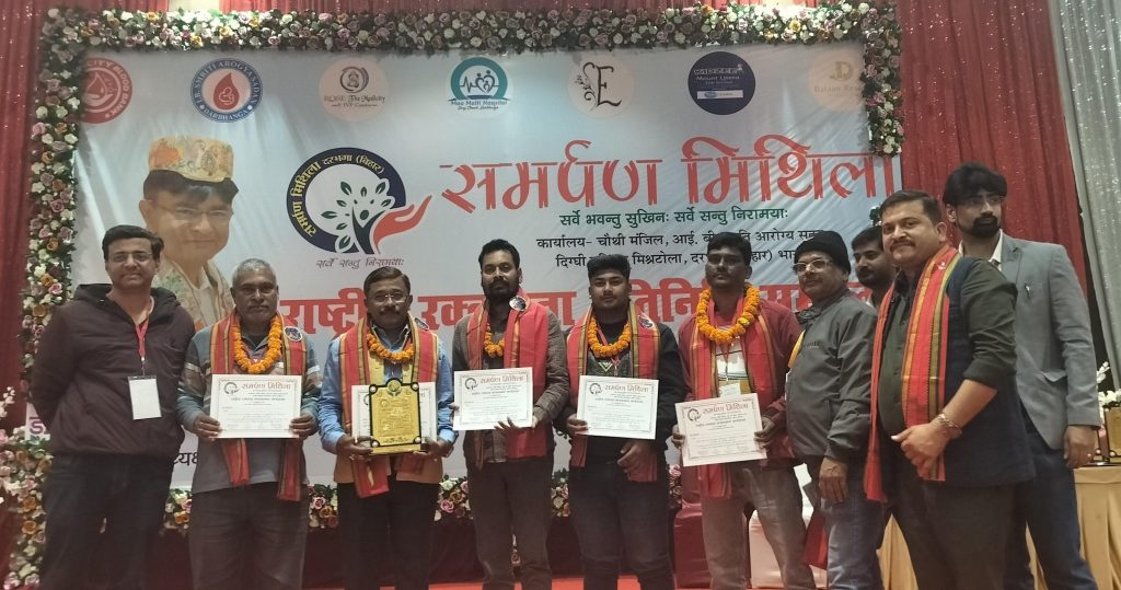 रक्तदान को जन अभियान बनाने में बहुमूल्य योगदान के लिए मिला पुरस्कार, समर्पण मिथिला ने समिति के संस्थापक अध्यक्ष स्वपन कुमार महतो को सम्मानित किया