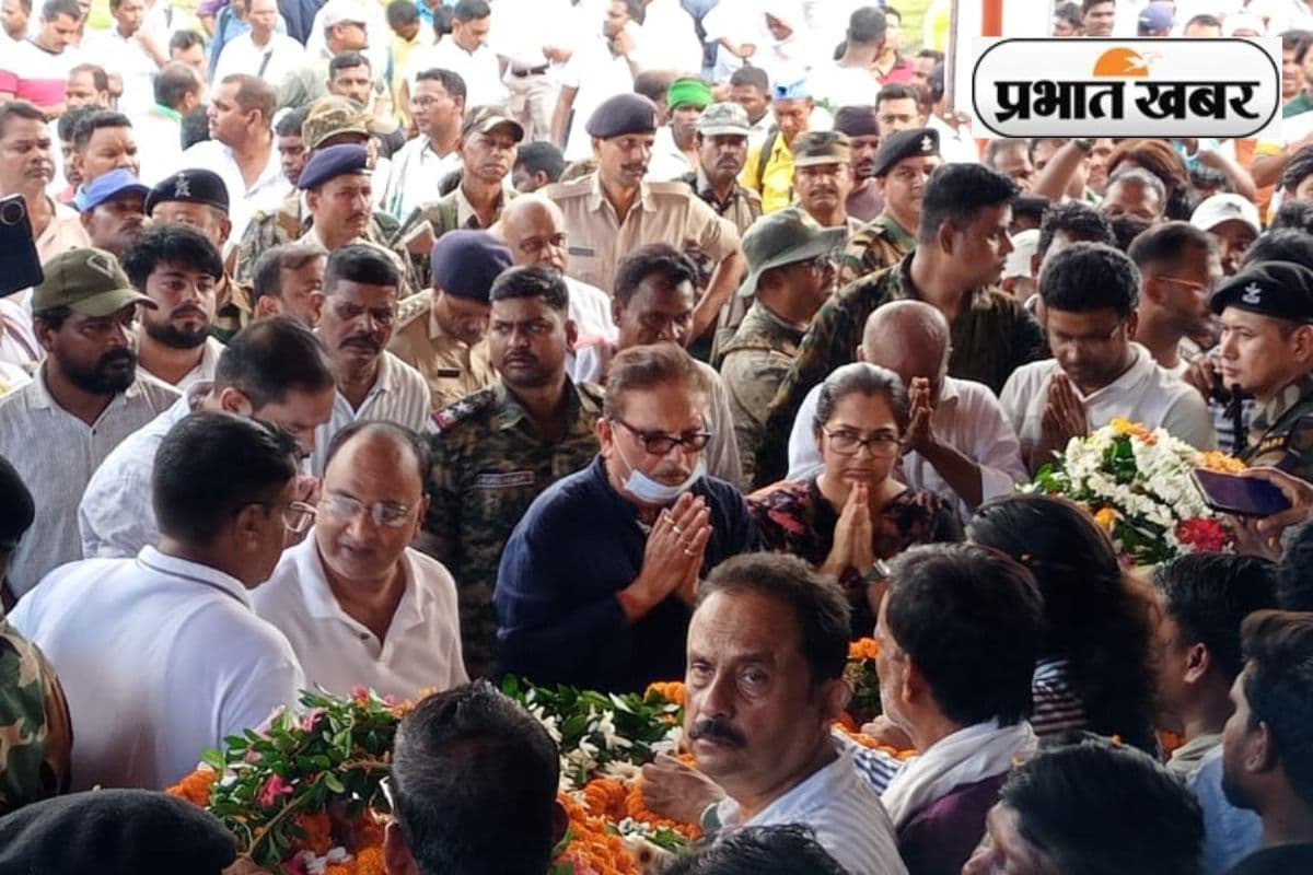 रामदास सोरेन को श्रद्धांजलि देने के लिए पहुंचे लोगों की आंखें नम थीं. पूरा घाटशिला गम में डूबा रहा. करीब डेढ़ घंटे तक मऊभंडार के एचसीएल मैदान में उनके पार्थिव शरीर को रखने के बाद जमशेदपुर के घोड़ाबांदा के लिए रवाना कर दिया गया. उनका अंतिम संस्कार घोड़ाबांदा के धुसा कॉलोनी टांड़ एरिया में शनिवार की शाम को होगा.