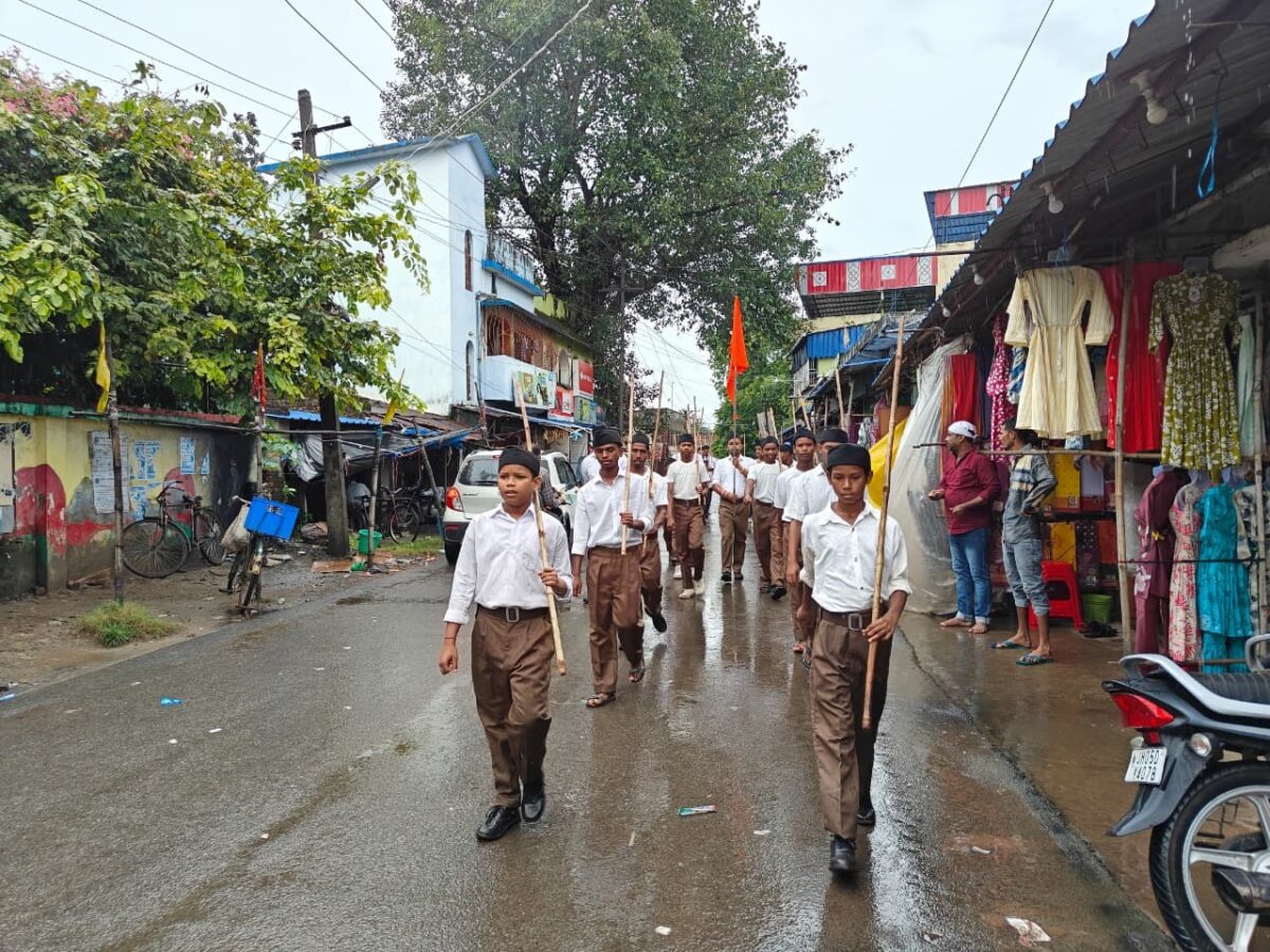 राष्ट्रीय स्वयंसेवक संघ के धालभूमगढ़ खंड की ओर से विजया दशमी पर शस्त्र पूजन व पथ संचलन का आयोजन हुआ. शिशु मंदिर में शस्त्र पूजन हुआ. मौके पर मुख्य अतिथि सेवानिवृत्त वन अधिकारी अंजनी कुमार सिंह व महानगर प्रचार प्रमुख हरिओम जायसवाल उपस्थित थे. वक्ताओं ने संघ के राष्ट्रवाद एवं आपदा के समय किये जाने वाले सामाजिक कार्यों का उल्लेख किया. इधर, शस्त्र पूजन के बाद पथ संचलन हुआ, जिसमें सभी स्वयंसेवक भगवा ध्वज के साथ नरसिंहगढ़ मुख्य बाजार होते हुए स्टेशन चौक काली मंदिर तक पथ संचलन किया. मौके पर खंड कार्यवाह विप्लव साव, देवानंद सिंह, अजय साहा, विपुल साहा, भाजपा जिला उपाध्यक्ष विश्वनाथ बेहरा, मंडल अध्यक्ष अनूप दास, पिंटू कुमार, दीपू अधिकारी, श्रवण सिंह, रिंटू कुदादा, संटू सिंह सोलंकी आदि उपस्थित थे.गालूडीह में आरएसएस का पथ संचलन और शस्त्र पूजन