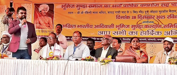 कालिकापुर. पोटका के सोहदा फुटबॉल मैदान में रविवार को अखिल भारतीय आदिवासी भूमिज-मुंडा कल्याण समिति, झारखंड के तत्वावधान में भूमिज-मुंडा समाज का 44वां वार्षिक वनभोज सह पारिवारिक मिलन समारोह का आयोजन किया गया. कार्यक्रम की शुरुआत परंपरागत पूजा-पाठ और विद-दिरि झंडोत्तोलन से हुई. इस अवसर पर खेलकूद, सांस्कृतिक कार्यक्रम और समाजिक परिचर्चा का भी आयोजन हुआ. मुख्य अतिथि के रूप में पोटका विधायक संजीव सरदार, तथा विशिष्ट अतिथि के रूप में पूर्व विधायक मेनका सरदार मौजूद रहीं. विधायक संजीव सरदार ने कहा कि समिति चार दशक पुरानी संगठन है जो समाज को संगठित कर आगे बढ़ाने का कार्य कर रही है. विधायक ने वार्षिक वनभोज सह पारिवारिक मिलन समारोह-2025 के अवसर पर हजारों लोगों के बीच मांदर और नगाड़ा बजाकर लोगों को समाज के संस्कृति से जुड़े रहने का संदेश दिया. उन्होंने कहा कि अब जब राज्य सरकार ने पांचवीं अनुसूचित क्षेत्र में पेसा कानून लागू करने की मंजूरी दी है, तब समाजिक संगठनों की जिम्मेदारी है कि पारंपरिक स्वशासन व्यवस्था को गांव स्तर से मजबूत करें ताकि समाज को अधिकार मिले. उन्होंने जानकारी दी कि 2 जनवरी 2025 को टीसीसी सोनारी में एक दिवसीय कार्यशाला आयोजित की जायेगी, जिसमें पेसा के तहत ग्राम व्यवस्था लागू करने पर विचार-विमर्श होगा. संजीव सरदार ने कहा कि संगठन कोल्हान क्षेत्र में एकजुटता के प्रयास में है और हर इलाके में धुमकुड़िया भवन निर्माण की योजना पर काम हो रहा है. उन्होंने समाज से वीर शहीद गंगा नारायण सिंह की जयंती आगामी वर्ष गोपाल मैदान, जमशेदपुर में धूमधाम से मनाने की अपील की और कहा कि कार्यक्रम में लगभग पचास हजार प्रतिभागियों की भागीदारी सुनिश्चित की जायेगी. पूर्व विधायक मेनका सरदार ने अपने संबोधन में समाज को एकता व जागरूकता बनाए रखने और सामूहिक विकास के लिए कार्य करने का संदेश दिया. मौके पर मुख्य रूप समाजसेवी बिभीषन सिंह भूमिज, कामला कांत सिंह मुंडा, शरद सिंह सरदार, मंगल सिंह मुंडा, मदन सिंह मुंडा, शाहेबराम सिंह मुंडा, विश्वनाथ सिंह सरदार, बहादुर सिंह मानकी, सुधाकर सिंह सरदार, लालबाबू सरदार, दिनेश चंद्र सरदार, शिव शंकर सिंह, सुजाता सिंह आदि उपस्थित थे.