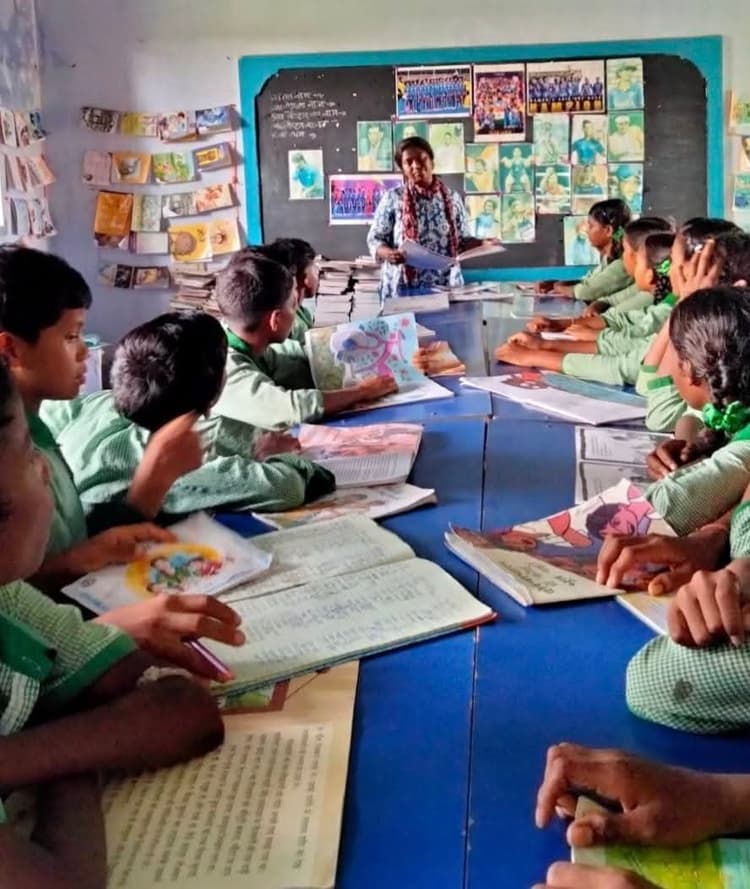 पढ़ने में कमजोर बच्चों को जोड़ने के लिए शिक्षकों ने चित्र आधारित किताबों का चयन किया. बच्चे चित्रों के माध्यम से कहानी समझने लगे. धीरे-धीरे बड़े विद्यार्थियों की मदद से अक्षर ज्ञान और पढ़ने की कला सीखने लगे. स्कूल में ‘फ्री रीडिंग टाइम’ की व्यवस्था है, जिसमें बच्चे अपनी पसंद की कोई भी किताब चुनकर पढ़ सकते हैं.
