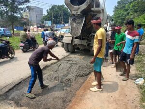 घाटशिला. घाटशिला की मुख्य सड़क और दाहीगोड़ा मेन रोड की खराब स्थिति से लोगों को भारी परेशानी हो रही थी. गड्ढों में पानी भरने से दुर्घटनाओं का खतरा था. इन सड़कों के निर्माण कार्य का शिलान्यास 3.41 करोड़ रुपये की लागत से 23 मार्च को पूर्व मंत्री रामदास सोरेन और सांसद विद्युत वरण महतो ने किया था. असमय बारिश के कारण काम शुरू नहीं हो सका. दुर्गा पूजा और आगामी त्योहारों के मद्देनजर रामदास सोरेन के पुत्र सोमेश चंद्र सोरेन के निर्देश पर झामुमो कार्यकर्ताओं ने मजदूर लगवाकर गड्ढों को कंक्रीट मसाले से भरवाया. स्थानीय लोगों ने इस कदम को सराहते हुए कहा कि यह केवल सड़क मरम्मत का कार्य नहीं, बल्कि जनता के सुख-दुख में साथ खड़े रहने की प्रतिबद्धता का प्रतीक है. मौके पर नगर अध्यक्ष विकास मजुमदार, मो. शहीद, काजल डॉन, रिंकू सिंह, प्रकाश निषाद, सौरभ, रहमत अली, गुड्डू सिद्धिकी, सोमेन मिश्रा, सुशील मार्डी समेत कई झामुमो कार्यकर्ता मौजूद थे
