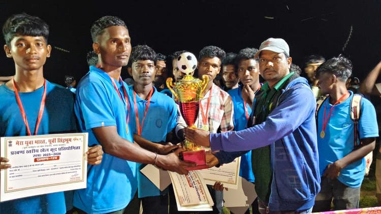 बोड़ाम. बोड़ाम के दामोदरपुर फुटबॉल मैदान में शुक्रवार को मेरा युवा भारत जमशेदपुर की ओर से पटमदा प्रखंड स्तरीय खेल कूद प्रतियोगिता का आयोजन हुआ. रियल ब्लास्टर क्लब दामोदरपुर के सहयोग से आयोजित प्रतियोगिता में पटमदा के सैकड़ों प्रतिभागियों ने भाग लिया. फुटबॉल प्रतियोगिता के पुरुष वर्ग के फाइनल में पवनपुर ए को एक गोल से हराकर पवनपुर बी चैम्पियन बना. वहीं, बालिका वर्ग में पवनपुर को हराकर कुकड़ू चैम्पियन बना.