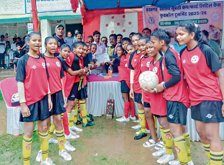 पटमदा में प्रखंड स्तरीय दो दिवसीय सुब्रतो कप फुटबॉल प्रतियोगिता का आयोजन किया गया. इसका फाइनल मैच सोमवार को किया गया. प्रतियोगिता में अंडर-17 बालक एवं बालिका वर्ग की टीमों ने भाग लिया. इसमें प्रखंड के सभी उच्च विद्यालय के 9 से 12वीं के विद्यार्थियों ने भाग लिया. अंडर-17 बालक वर्ग में प्लस टू उच्च विद्यालय बांगुड़दा की टीम विजेता व उत्क्रमित उच्च विद्यालय जोड़सा की टीम उपविजेता रही. वहीं बालिका वर्ग में कस्तूरबा विद्यालय बांगुड़दा (पटमदा) की टीम विजेता व एसएस प्लस टू उच्च विद्यालय पटमदा की टीम उपविजेता रही. सभी विजेता एवं उपविजेता टीमों को अतिथियों ने ट्रॉफी और प्रशस्ति पत्र देकर सम्मानित किया. इस मौके पर पटमदा सीओ डॉ राजेंद्र दास ने कहा कि खेल से बच्चों का तन और मन दोनों स्वस्थ रहता है. स्वस्थ मन में स्वस्थ मस्तिष्क का वास होता है. उन्होंने कहा कि जो पानी से नहाता है वह लिबास बदलता है और जो पसीना से नहाते हैं, वह इतिहास बदलते हैं. कार्यक्रम को जिला परिषद खगेंद्र नाथ महतो ने भी संबोधित किया. प्रतियोगिता को सफल बनाने में शिक्षक राहुल कुमार, महेश द्विवेदी, बीआरपी अबनी मोहंती, अरविंद कुइला, प्रबोध महतो, अजीत कुमार, अंबेश कुमार, अशोक महतो, श्यामपद गोप, हरप्रीत सिंह कौर, रामपद महतो, राजनारायण दत्त, रमेश तिवारी, प्राणकृष्ण कुंभकार, मधुमिता गोराई, बासुदेव महतो, अमीय दत्त, पंचानन महतो, रथु महतो, अजय सिंह, पशुपति महतो, दिनेश मालाकार का सराहनीय योगदान रहा.डिस्क्लेमर: यह प्रभात खबर समाचार पत्र की ऑटोमेटेड न्यूज फीड है. इसे प्रभात खबर डॉट कॉम की टीम ने संपादित नहीं किया है