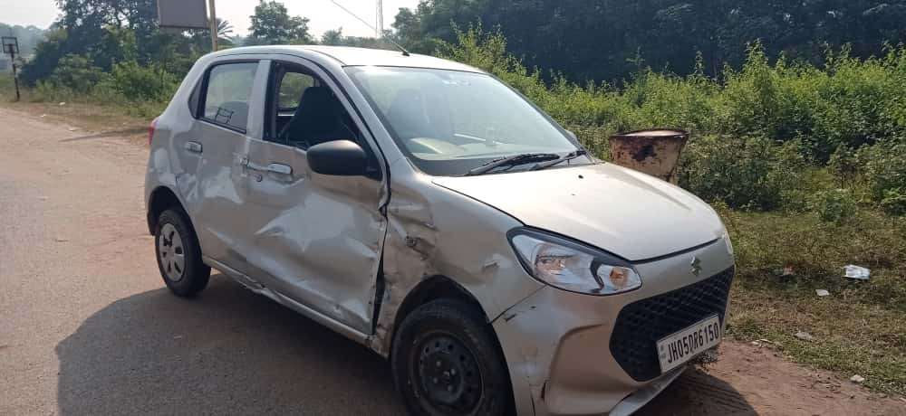 धालभूमगढ़. नरसिंहगढ़ बस स्टैंड के पास गुरुवार की दोपहर एक ट्रक और कार में भिड़ंत हो गयी. ट्रक में फंसने से कार काफी दूर तक डिवाइडर से रगड़ाते हुए गयी. एनएच किनारे मौजूद लोगों के शोर मचाने के बाद चालक ने ट्रक को रोका. इससे कार में सवार लोगों की जान बच गयी. दरअसल, एनएच पार कर रहे एक भैंस को बचाने में दुर्घटना हो गयी. घटना के समय कई लोग एनएच के किनारे मौजूद थे. जानकारी के अनुसार, कार (जेएच 05 डीआर 6150) से पीयूष कुमार महतो अपने परिवार के साथ घाटशिला की ओर जा रहे थे. वहीं, ट्रक (एचआर 73 बी 0594) भी घाटशिला की ओर जा रहा था. ट्रक चालक अरशद खान ने बताया कि भैंस को बचाने के क्रम में दुर्घटना घटी. घटना की सूचना मिलते ही पुलिस पहुंची. दोनों पक्षों ने आपसी समझौता कर मामले को सुलझा लिया.
