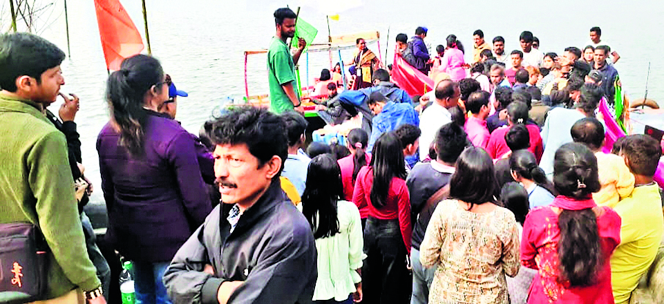 घाटशिला के प्रमुख पर्यटक स्थल बुरुडीह डैम में क्रिसमस पर पश्चिम बंगाल समेत आसपास के इलाकों से बड़ी संख्या में पुरुष, महिलाएं और बच्चे पहुंचे. नौका विहार में अत्याधिक भीड़ देखकर पुलिस को हस्तक्षेप करना पड़ा. गुरुवार को दो पक्षों द्वारा नौका परिचालन किया जा रहा था, जिसके लिए प्रति व्यक्ति 50 रुपये शुल्क तय था. नौका सवारी के लिए बड़ी संख्या में लोग पहुंच गए, जिससे घाट पर भारी भीड़ उमड़ पड़ी. भीड़ अधिक होने के कारण एक नौका के पेंदी में बीच से दरार पड़ने जैसी स्थिति बन गयी. इसके बावजूद बड़ी संख्या में महिला, पुरुष और बच्चे उसी नौका पर चढ़ गये, जिससे कुछ देर के लिए अफरा-तफरी मच गयी. बताया गया कि एक पक्ष तीन लकड़ी की नौकाएं चला रहा था, जबकि दूसरा पक्ष दो नौकाओं का संचालन कर रहा था. स्थिति को नियंत्रित करने के लिए मौके पर पुलिस को हस्तक्षेप करना पड़ा. सुरक्षा के मद्देनजर पुलिस ने नौका विहार करने आये लोगों को दो कतारों में खड़ा कराया और क्रमवार व सावधानीपूर्वक नौका पर बैठने का निर्देश दिया. आसपास के दुकानदारों और नाव चालकों ने बताया कि इस वर्ष पिछले वर्षों की तुलना में भीड़ अपेक्षाकृत कम रही. इसके बावजूद प्रशासन के निर्देश पर सुबह से शाम तक पुलिस बल तैनात रहा.डिस्क्लेमर: यह प्रभात खबर समाचार पत्र की ऑटोमेटेड न्यूज फीड है. इसे प्रभात खबर डॉट कॉम की टीम ने संपादित नहीं किया है
