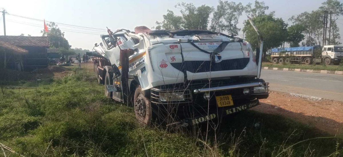 East Singhbhum News : धालभूमगढ़ में एनएच पर डिवाइडर से टकरा कर ट्रेलर पलटा, चालक की मौत, पीछे की कार झोपड़ी में घुसी