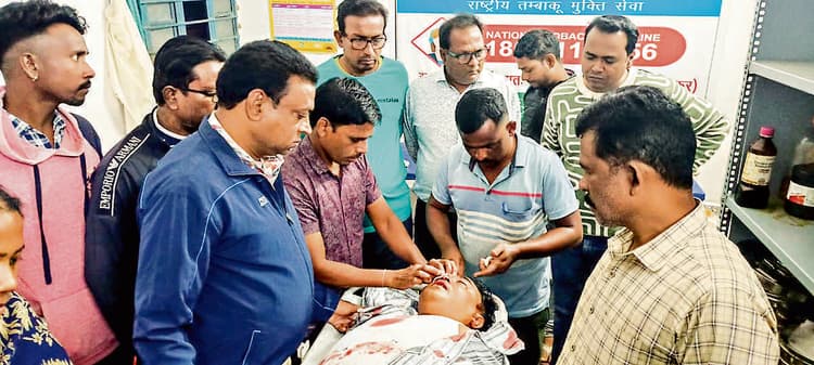 चाकुलिया नप क्षेत्र स्थित नया बाजार राम मंदिर के समीप शनिवार को दो बाइक की सीधी टक्कर में झामुमो युवा नेता टोटन खामराई (40) घायल हो गये. चाकुलिया स्थित बेंद निवासी टोटन खामराई विवाह समारोह में शामिल होने बहरागोड़ा जा रहे थे. तभी विपरीत दिशा से बाइक लेकर आ रहा भातकुंडा पंचायत स्थित दखिनासोल का युवक बबलू मुंडा से उनकी सीधी टक्कर हो गयी. इस घटना में दोनों को काफी चोट आयी है. दोनों की बाइक क्षतिग्रस्त हो गयी. टक्कर इतनी जोरदार थी कि टोटन का हेलमेट टूट गया. उसके चेहरे पर गंभीर चोट आयी है. स्थानीय लोगों ने एंबुलेंस से दोनों को चाकुलिया सामुदायिक स्वास्थ्य केंद्र पहुंचाया. अस्पताल में ड्रेसर नहीं होने से लैब टेक्नीशियन संतोष कुमार समेत अस्पताल के अनुसेवी, सफाई कर्मी व नाइट गार्ड ने मिलकर घायलों की ड्रेसिंग की. टोटन की गंभीर स्थिति को देखते हुए उसे झाड़ग्राम रेफर किया गया.डिस्क्लेमर: यह प्रभात खबर समाचार पत्र की ऑटोमेटेड न्यूज फीड है. इसे प्रभात खबर डॉट कॉम की टीम ने संपादित नहीं किया है