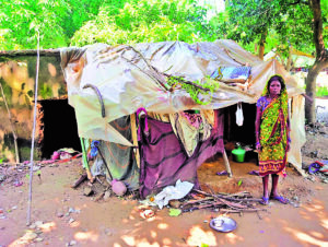 चाकुलिया प्रखंड की जुगीतोपा पंचायत स्थित सिमुलडांगा सबर टोला में सबर जनजाति प्लास्टिक टांगकर रहने को विवश है.