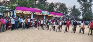 साइकिल रेस में बड़ी संख्या में युवाओं ने हिस्सा लिया. विधायक दशरथ गागराई ने हरी झंडी दिखा कर रवाना किया. विजेता लोटापाहाड़ के माटा चाकी को 20,500 रुपये व उप विजेता हाथिया के शंकर बोदरा को 15 हजार रुपये नगद पुरस्कार दिया गया. जवानों के 1600 मीटर दौड़ के विजेता सन्नी इचागुटू को पांच हजार व उप विजेता हिलका सिंह को तीन हजार, 800 मीटर दौर के विजेता अर्जुन बानरा को तीन हजार व उप विजेता कुलदीप बोदरा को दो हजार रुपये नगद पुरस्कार दिये गये.हंडी फोड़ में पार्वती, मुर्गा लड़ाई में गोपी विजेता