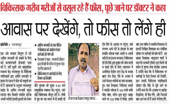 बाद में रामप्रीत ने विधायक से इसकी लिखित शिकायत की. शुक्रवार को हिंदी दैनिक समाचार पत्र प्रभात खबर ने इस समाचार को प्रमुखता से प्रकाशित किया. इसके बाद प्रभारी चिकित्सक ने रामप्रीत कोरवा को बुलवाया और उसके 300 रुपये वापस कर दिये.