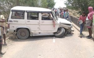 गढ़वा में बीच पुल पर दुर्घटनाग्रस्त हुई बोलेरो कार
