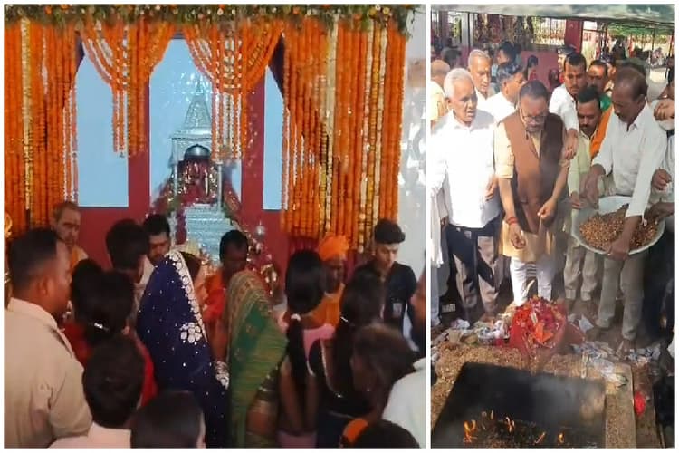 मां की मुख्य प्रतिमा को 61 किलोग्राम चांदी से निर्मित श्रीयंत्र के आसन पर विराजमान किया गया है और ऊपर चांदी का भव्य छत्र सुशोभित है. रामनवमी के अवसर पर मंदिर परिसर में विशाल मेले का दृश्य है. बच्चों के लिए झूले, श्रृंगार सामग्री और प्रसाद की दुकानों से रौनक बढ़ गई है.