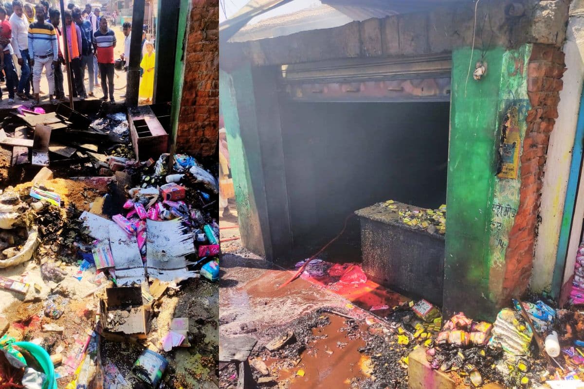दिन में 11:30 बजे गोदरमाना बाजार के मेन रोड पर लगी आग