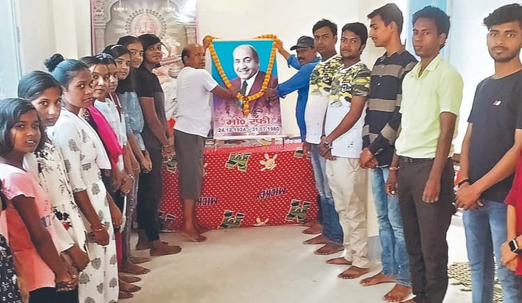 गढ़वा: संगीत कला महाविद्यालय में सुरों के सम्राट मोहम्मद रफी की 42वीं पुण्यतिथि मनायी गयी. महाविद्यालय के विद्यार्थियों एवं वरिष्ठ कलाकारों ने मोहम्मद रफी की तस्वीर पर दीप प्रज्ज्वलित कर व पुष्पांजलि अर्पित कर श्रद्धांजलि दी. इसके बाद विद्यार्थियों व कलाकारों ने गीतों के माध्यम से रफी को याद किया.