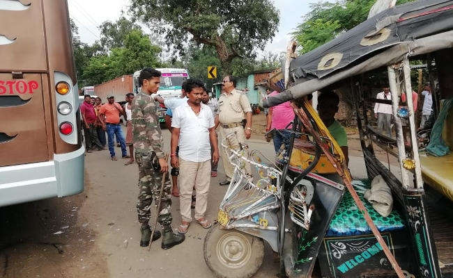 गिरिडीह में रांची जा रही बस ने ऑटो को मारी टक्कर, पुल से गिरने से बची यात्रियों से भरी बस