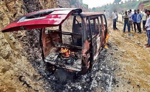 पहले वैन बंद हो गयी, फिर पीछे लुढ़कने लगी और आग लग गयी : सेवानंद टुडू को एक सप्ताह पूर्व लकवा मार दिया था. वह चलने-फिरने में असमर्थ थे. स्थिति बिगड़ते देख परिजन उनका इलाज करवाने सोमवार सुबह भाड़े के मारुति वैन से बनासो (विष्णुगढ़) जा रहे थे. सुबह 11 बजे बेलकुशी स्थित नदी के पास वैन अचानक बंद हो गयी और पीछे की ओर लुढ़कने लगी. इसी क्रम में वैन में आग लग गयी.
